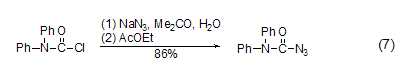 與疊氮化鈉的反應 DPC-Cl可與疊氮化鈉反應,生成相應的疊氮化合物 (式7)[14]。